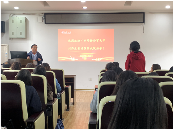 在问答环节中,师生针对相关学术问题积极提问,讨论气氛热烈,刘教授对师生提出的问题一一进行了详细解答。