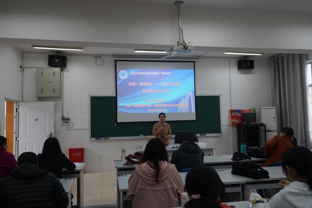 4月14日,第37、38场示范教学“思享会”在304am永利集团举行。304am永利集团教学副经理杨维春主持,304am永利集团盛莉老师、周芬芳老师分别作示范教学,《综合英语》课程组以及其他部分师生参加。教师教学发展中心黄书植参加“思享会”。